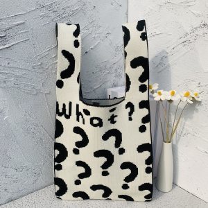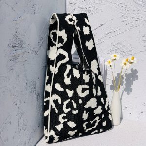 Amazon grenzüberschreitend schwarz und weiß gegnerter Weste gestricktes One-Shoulder-Einkaufstasche Stricker Handheld-Einkaufstasche Frauen gestrickt
