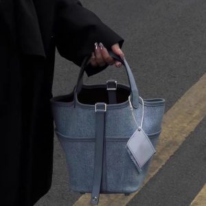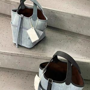 Denim Gemüsekorb Handtasche 2025 Sommer neuer Stil Pendler Spleißbeutel Mode und vielseitige mittelgroße Tasche