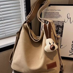 Canvas -Tasche große Kapazität Frauen in INS -Stil künstlerischer und vielseitiger Umhängetasche Student Spring Freizeitpendler Mama Tasche
