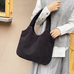 Europäische und amerikanische Cord -Cord -Einkaufstasche Mode koreanische lässige Fashion Canvas Handtasche einfache einzelne Schulter -Frauen -Tasche