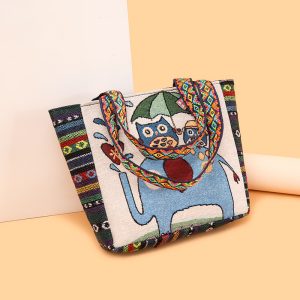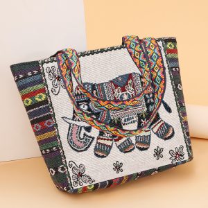 Ethnische Leinwandbag Frauen neue Stilhandtasche für doppelseitige gewebte langlebige und robuste Arbeit Handtasche für Frauen