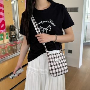 2025 Frühlings- und Sommer Neue karierte Umhängetasche süße und vielseitige Mädchen Achselstasche und vielseitige Tasche