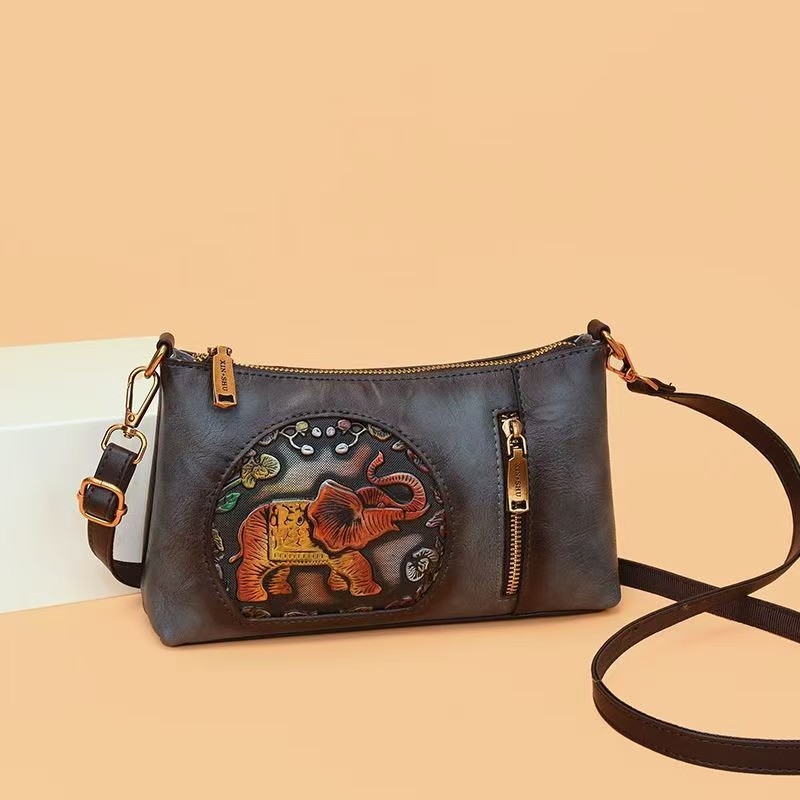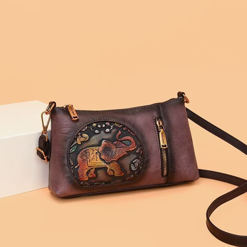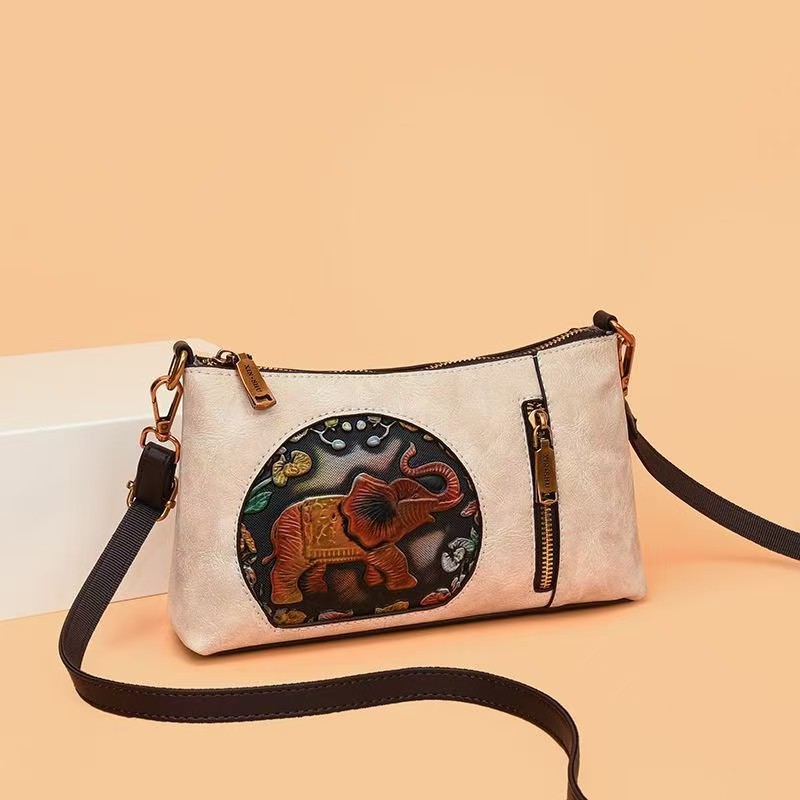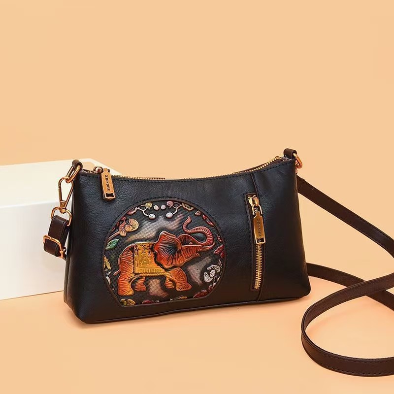 2025 Neue Bag Elefant Retro Chinesische Stil Chinesischer Stil mehrschichtiger einschichtiger One-Shoulder-Kissenbeutel mit großer Kapazität mittleren Alters mit großer Kapazität