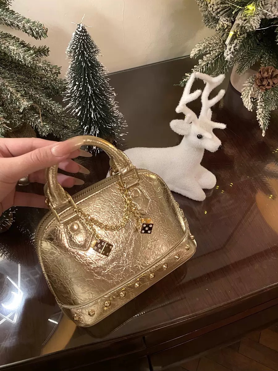 2025 Neues Nischen-Design High-End Champagner Nietbeutel Mode One-Shoulder Diagonal Straddle Bag