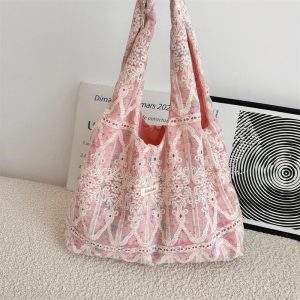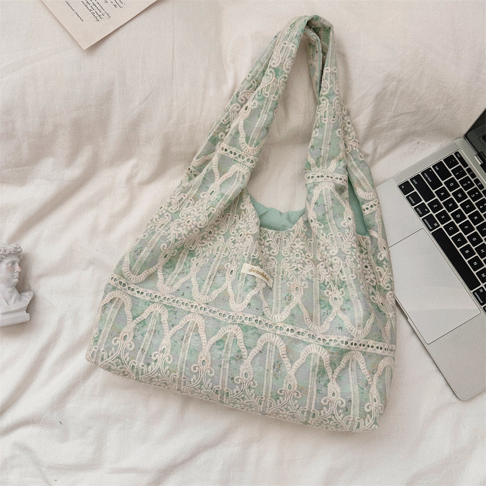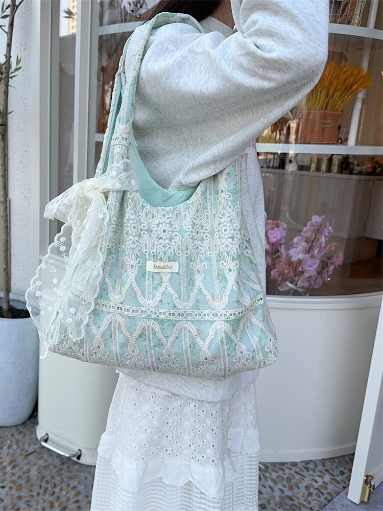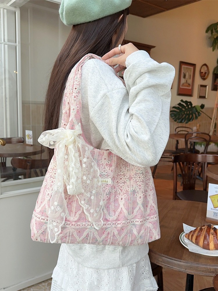 49183 Korean Girl Heart Lace Umhängetasche Vielseitige Pendler -Achselhöhlen -Achselhöhle große Kapazität Student Student Canvas Tasche