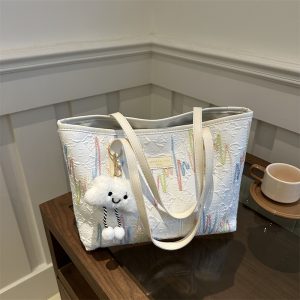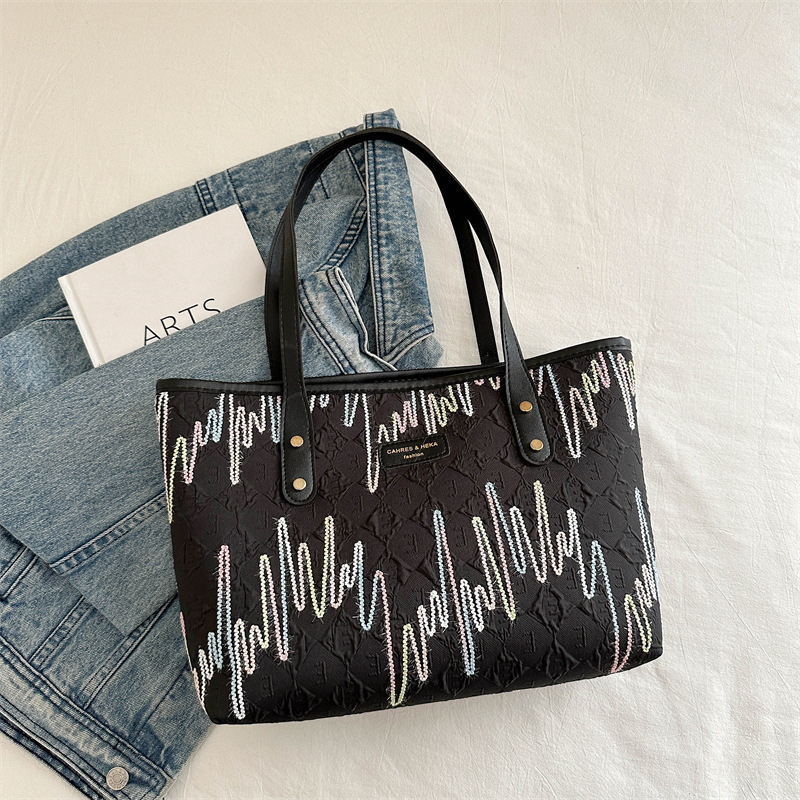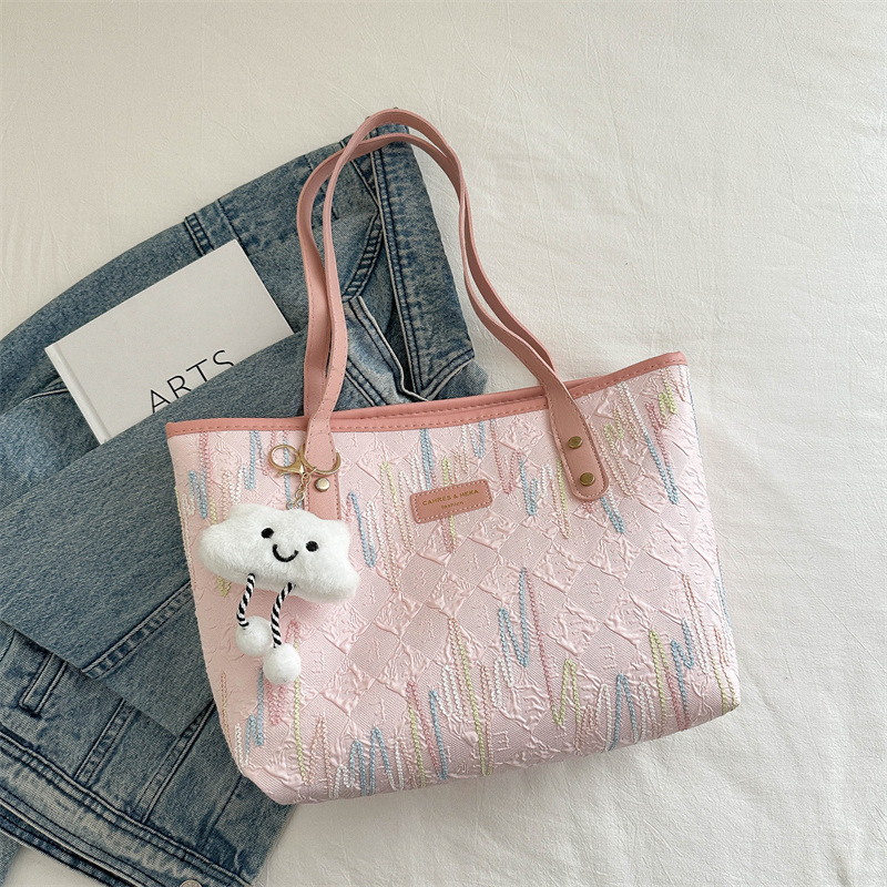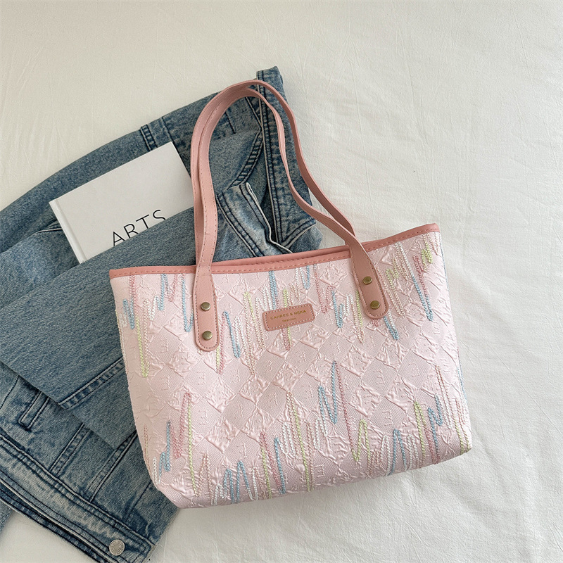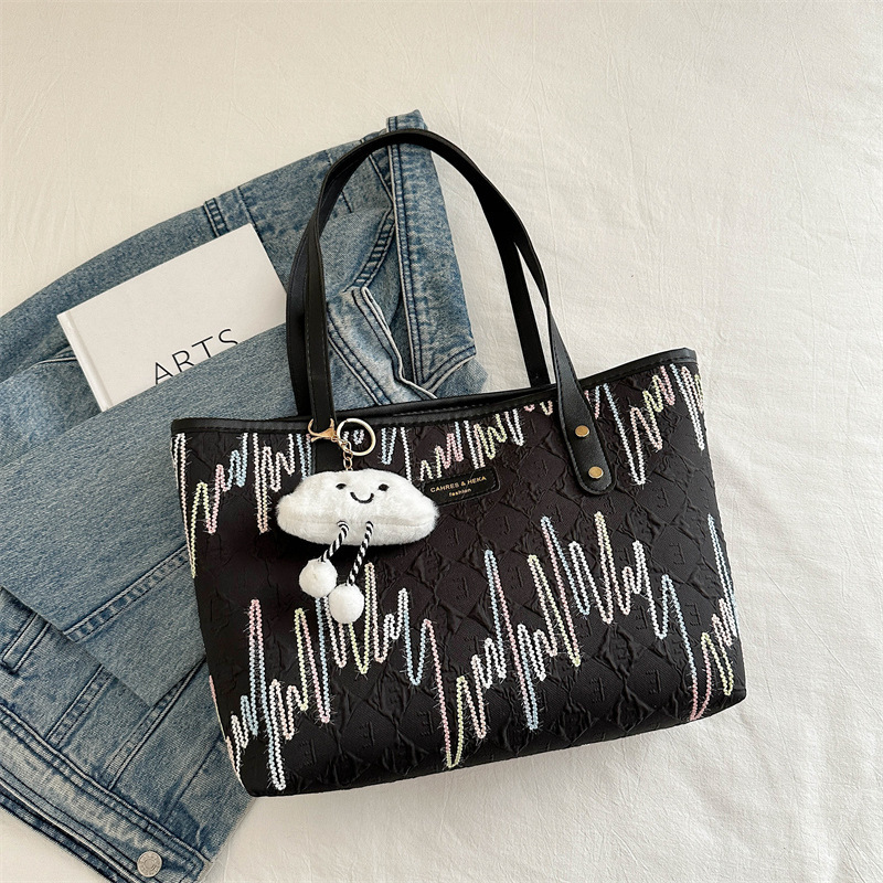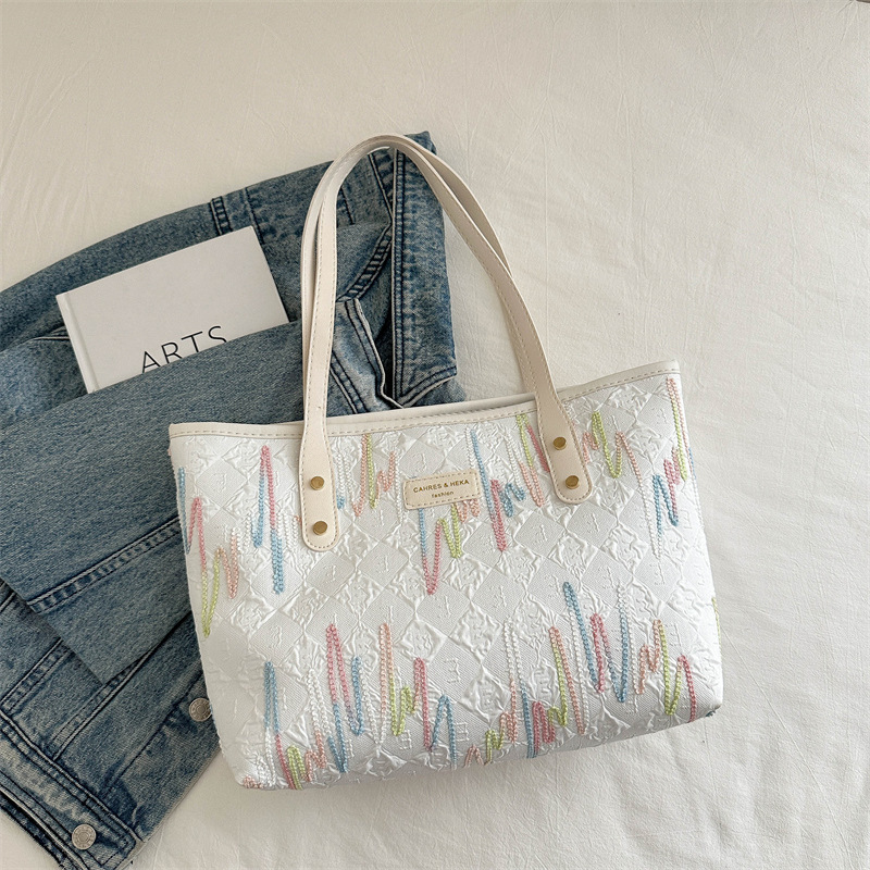 Casual Puting große Kapazitätstasche für Frauen 2025 neue Mode College-Studenten in der Klasse One-Shoulder Striped Sticked Tote Tasche
