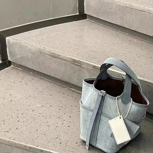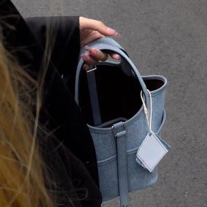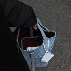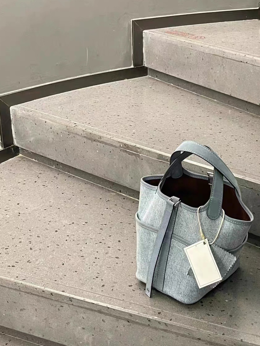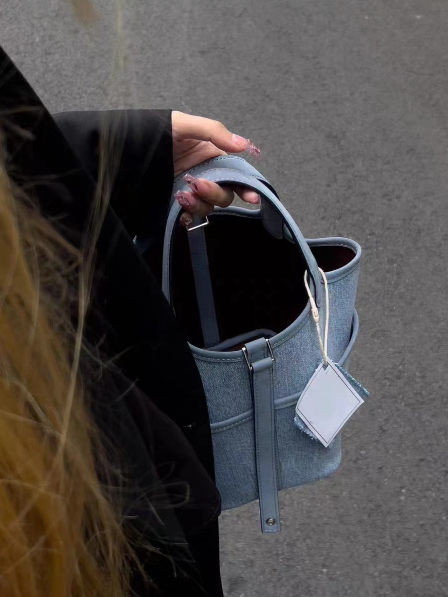 Denim Gemüsekorb Handtasche 2025 Sommer neuer Stil Pendler Spleißbeutel Mode und vielseitige mittelgroße Tasche