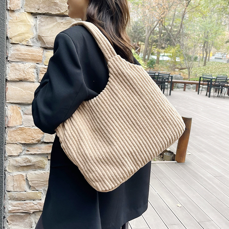 Europäische und amerikanische Cord -Cord -Einkaufstasche Mode koreanische lässige Fashion Canvas Handtasche einfache einzelne Schulter -Frauen -Tasche
