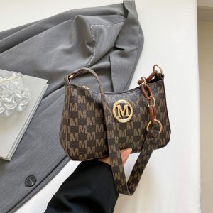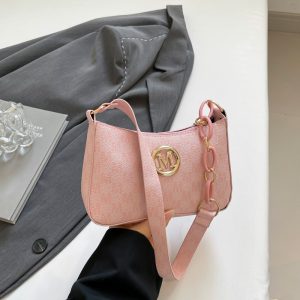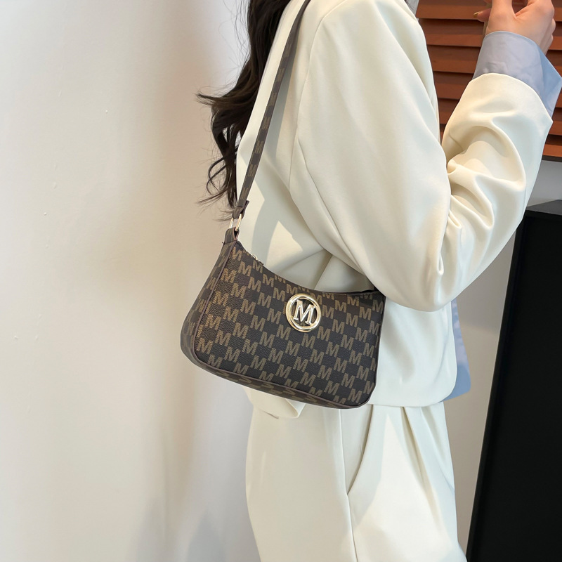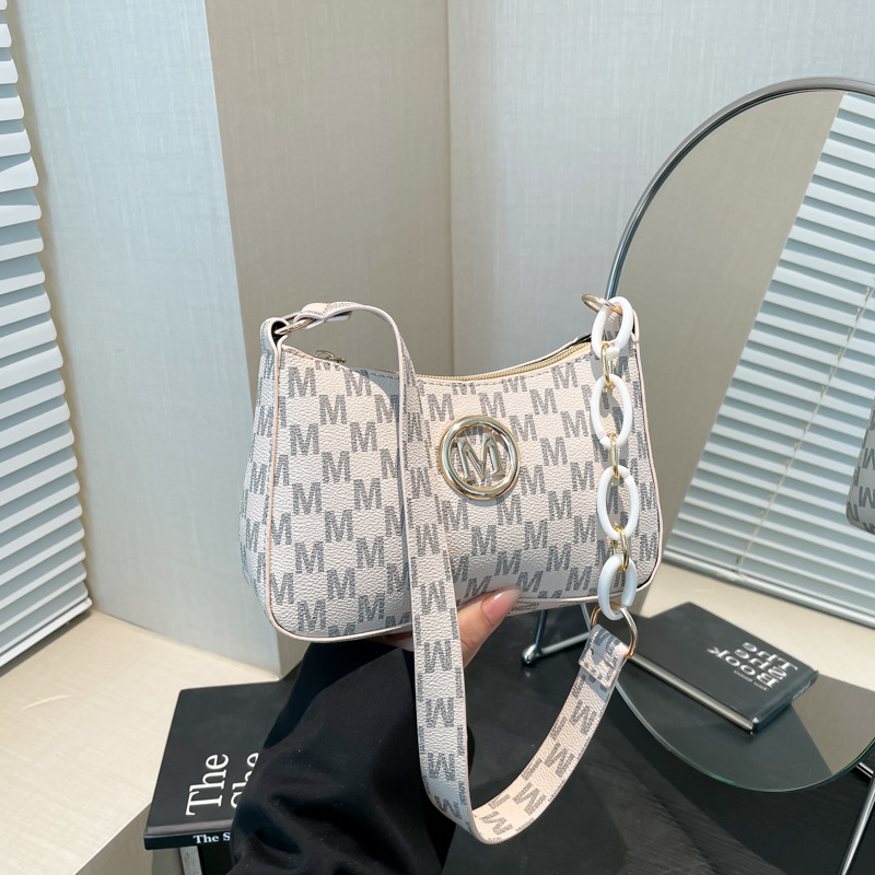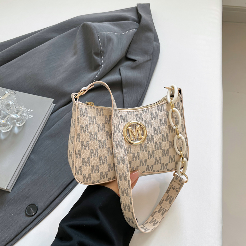 Französische Retro-Frauen-One-Shoulder-Unterarmtasche 2025 Neue Crossbody-Kette kleiner Quadratbeutel Buchstabe bedruckte Handtasche Frauenbeutel