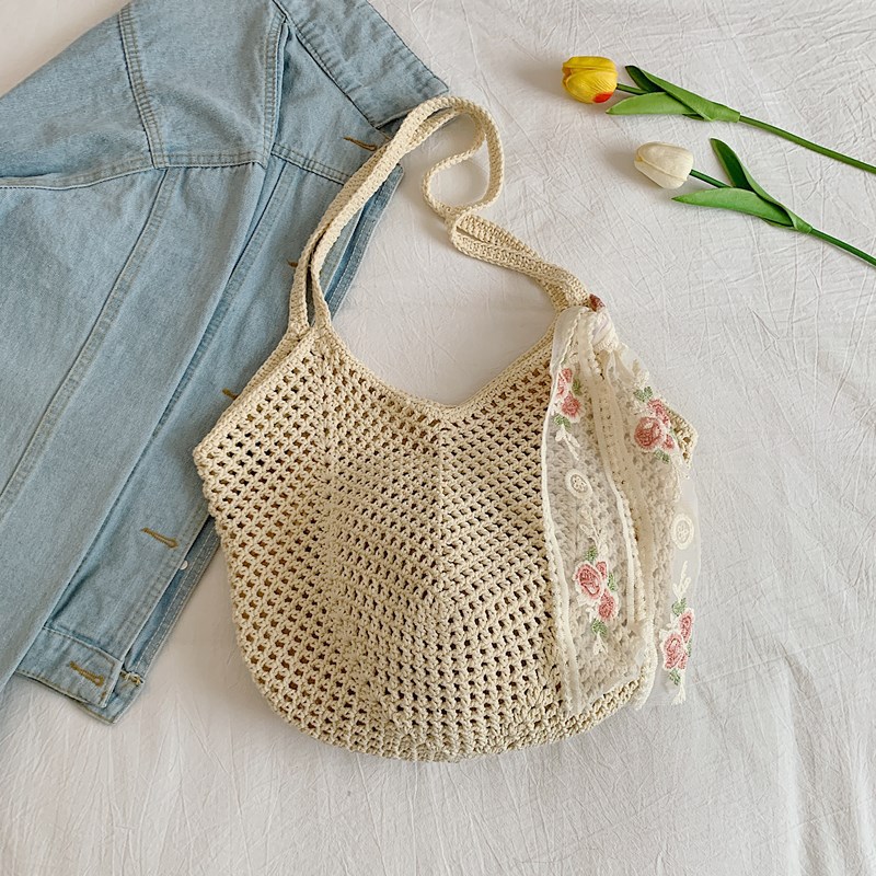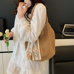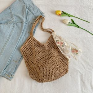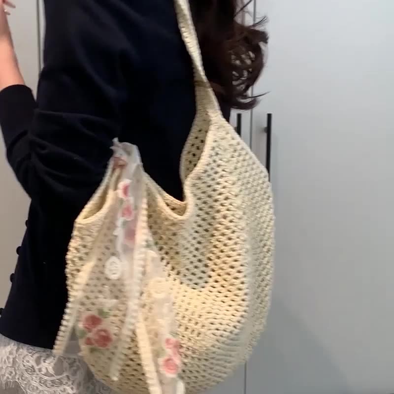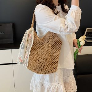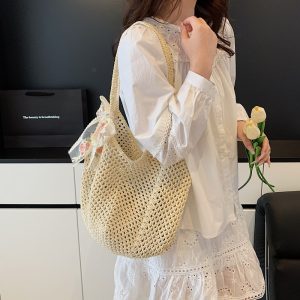 Geflochtene Tasche für Frauen große Kapazität 2025 Neue Frühlings- und Sommer vielseitiger lässiger Hollow One-Shoulder Beach Urlaubstasche