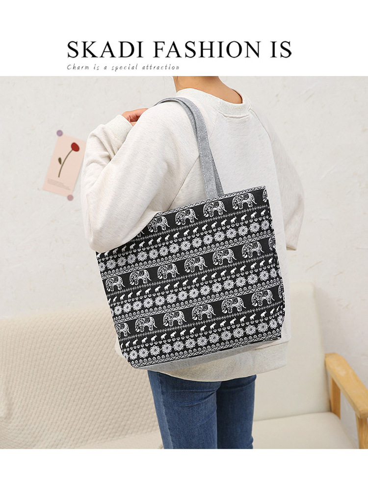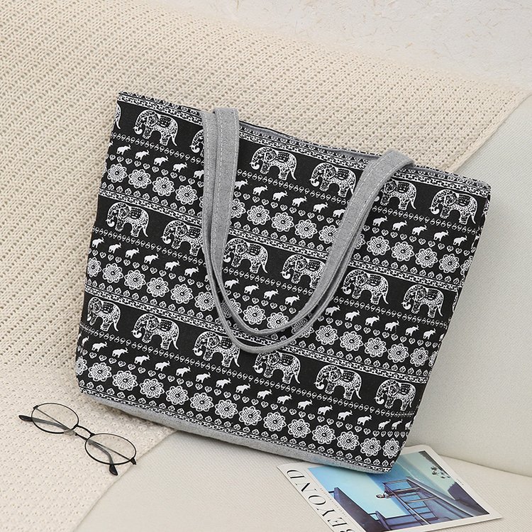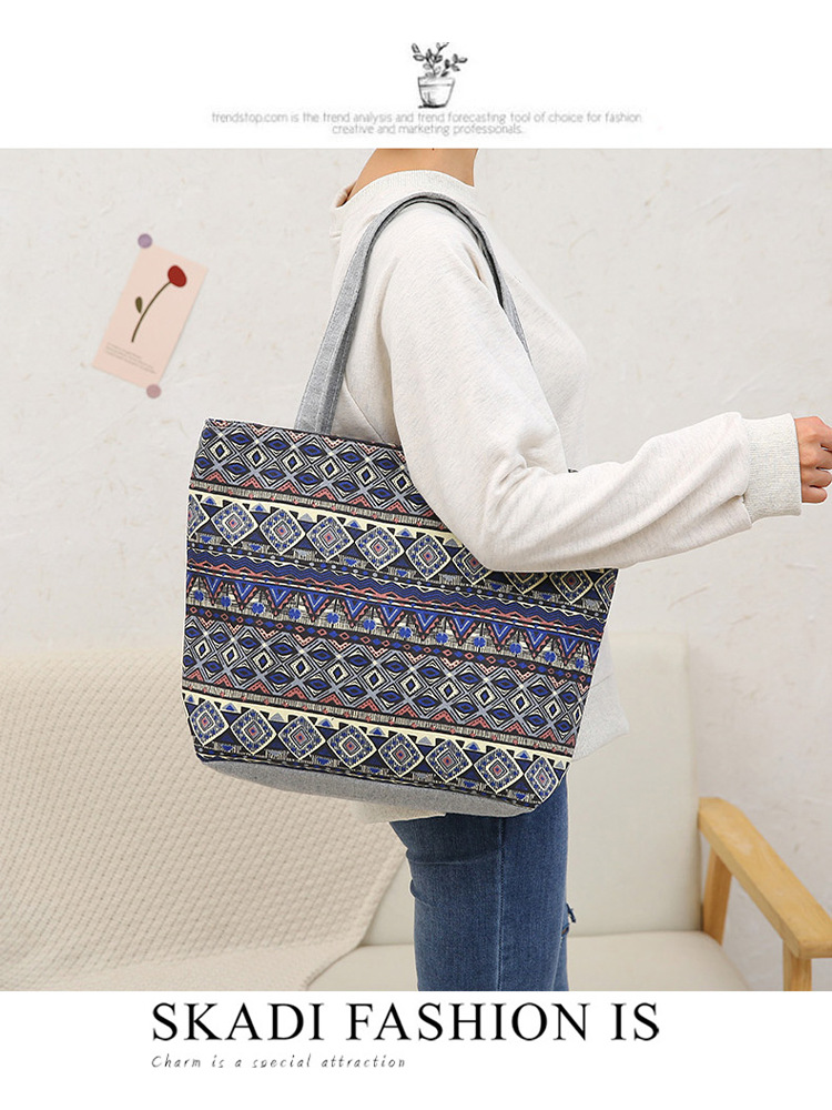 Grenzüberschreitende 2025 Neuer nationaler Stil großer Kapazitätsbeutel Leinwand Tasche weibliche Studentin One-Shoulder Pendeln Frauenbeutel Handheld-Tasche