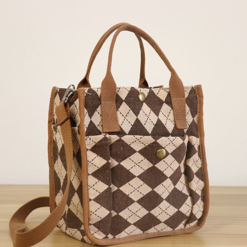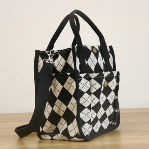 Grenzüberschreitender retro modischer Multi-Techet-Jacquard Hound TOTH Eimer Bag Neues lässige Kontrast Farbe One-Shoulder Crossbody Mittelaltertasche