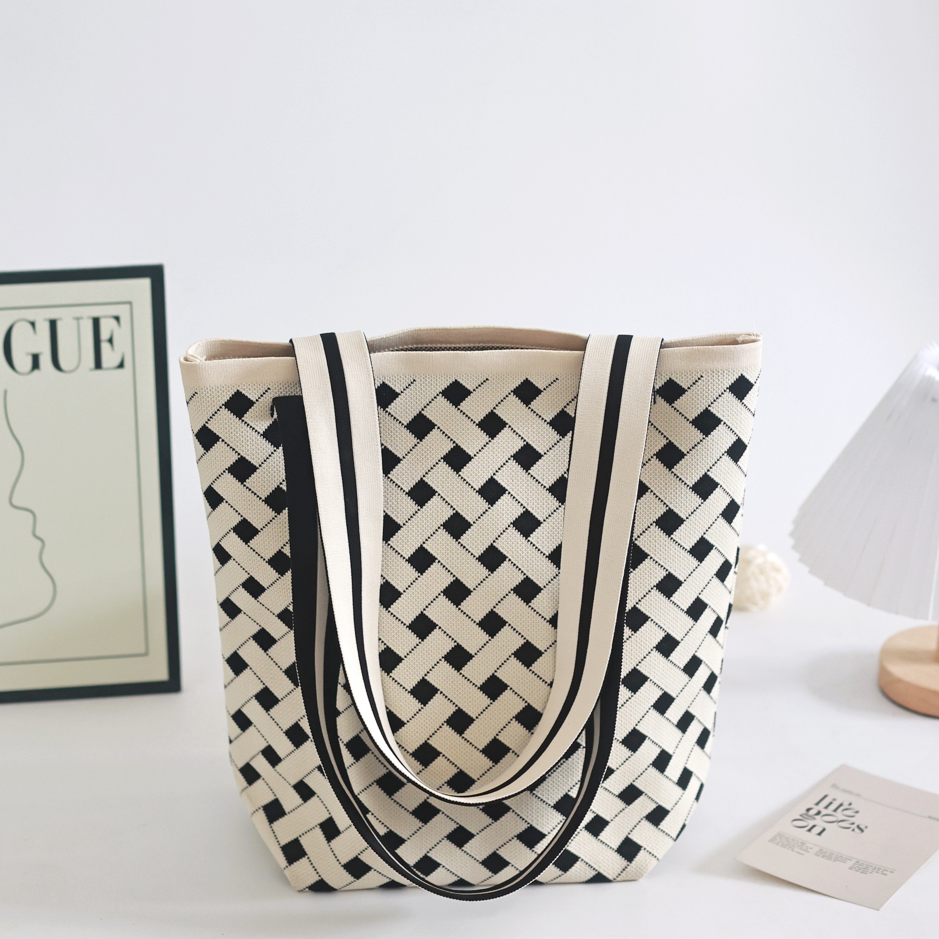 Große Kapazität Stricktasche 2024 Neue Frauenbeutel modische und vielseitige Umhängetaschen Einkaufstasche Schaufelbeutel Umhängetasche
