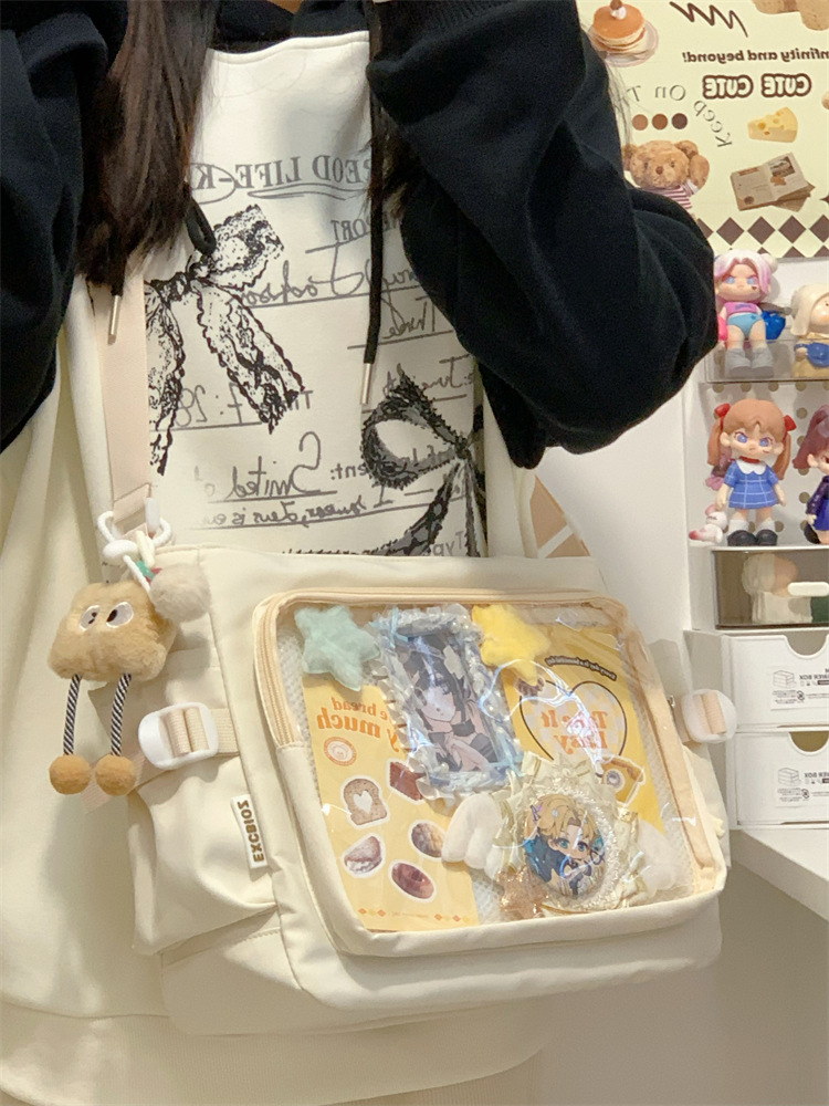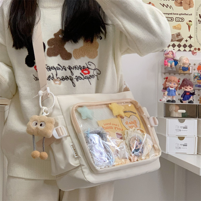 Japanische Ins Wind Transparent Bar Schmerz Bag Campus vielseitige Kapazität Einfacher Einschuld Crossbody-Bag Girl Postman-Tasche