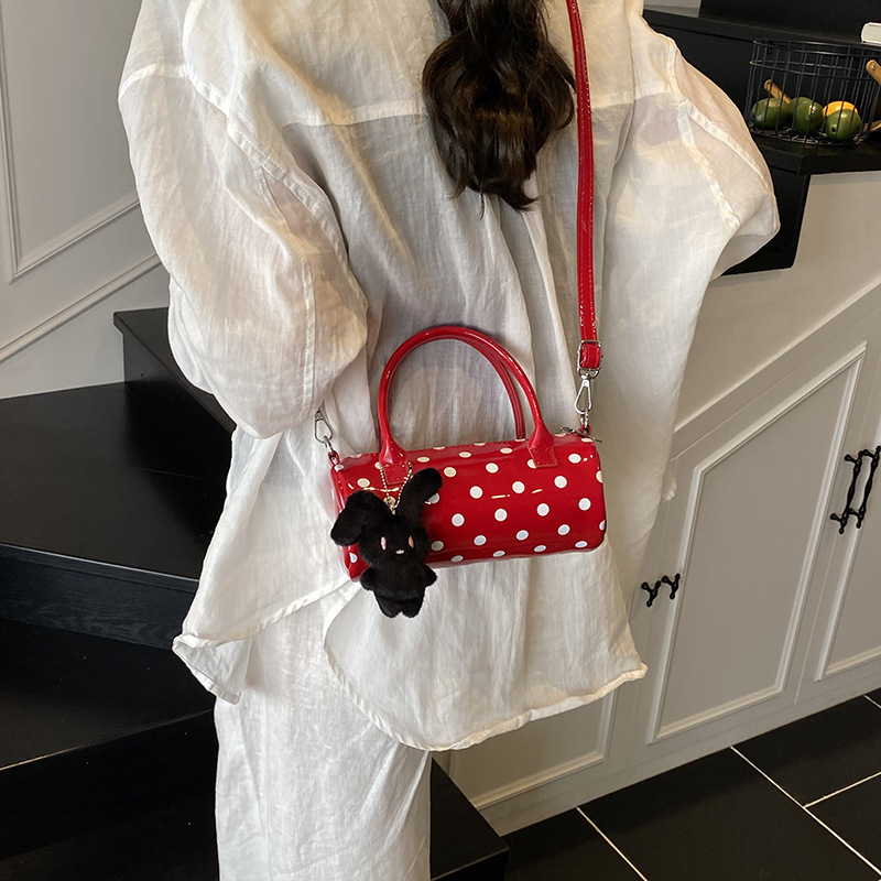 Koreanische Version von Cute Polka Dot Handheld Zylindertasche für Frauen 2025 Sommer Mode vielseitige Freizeitpendler One-Shoulder Crossbody Tasche