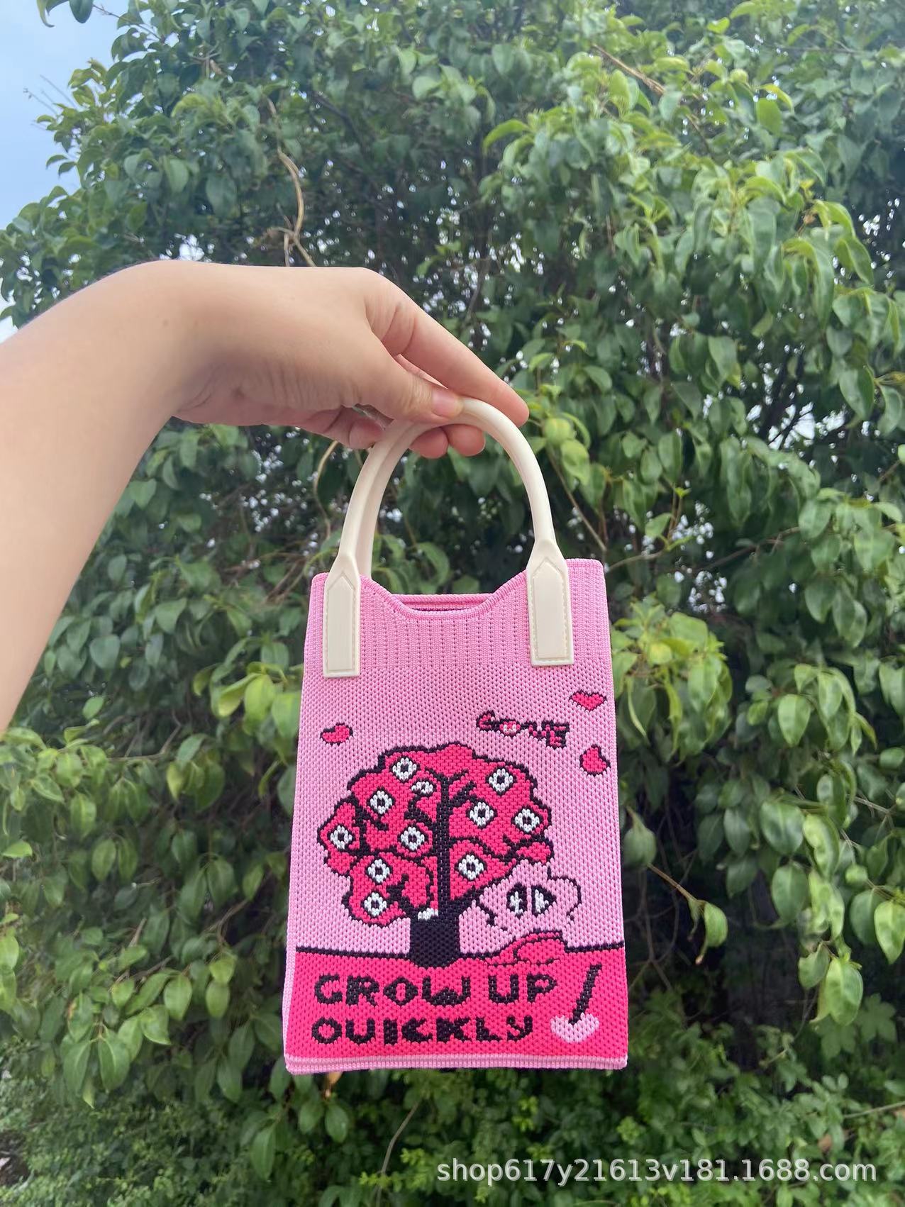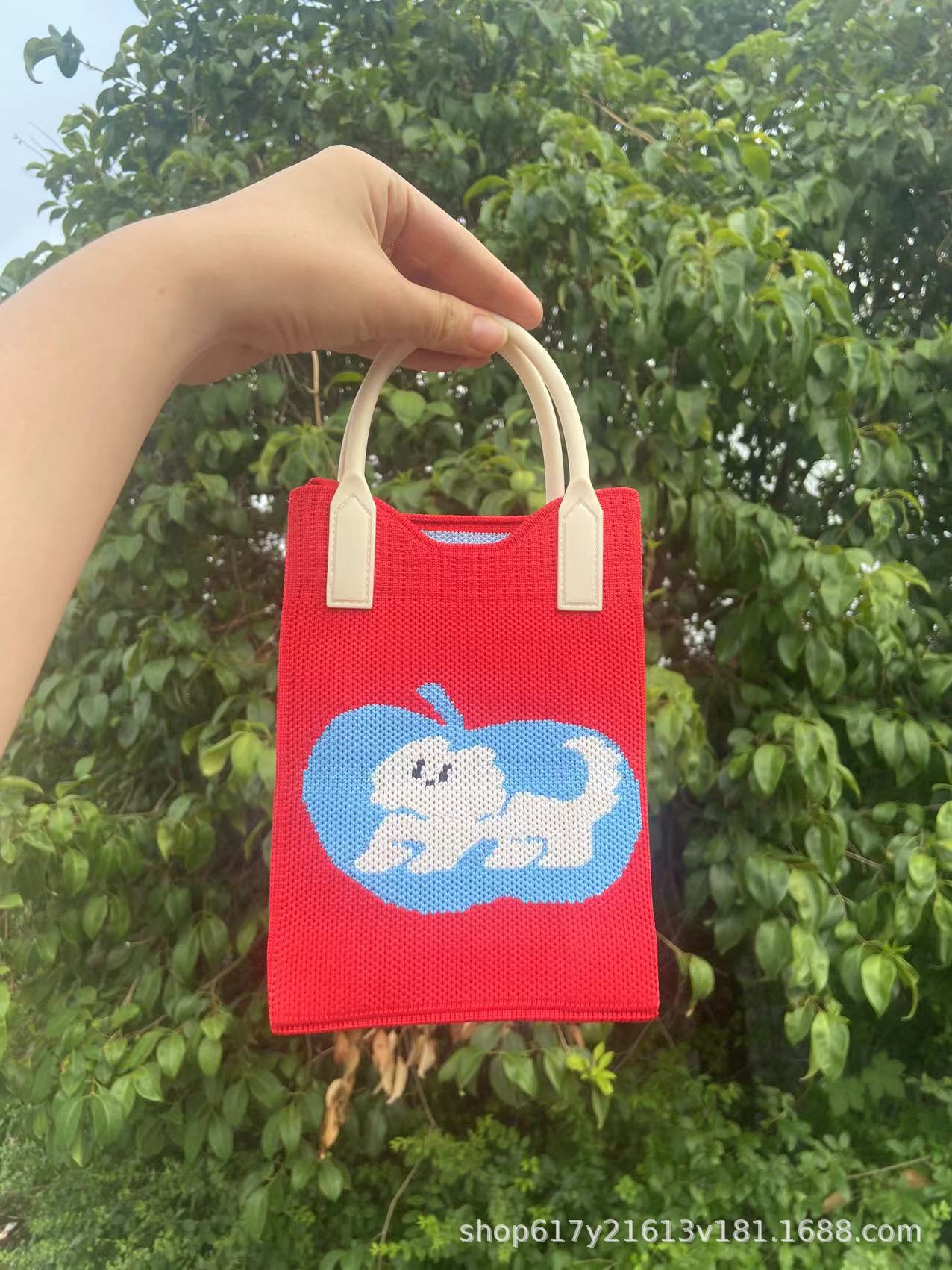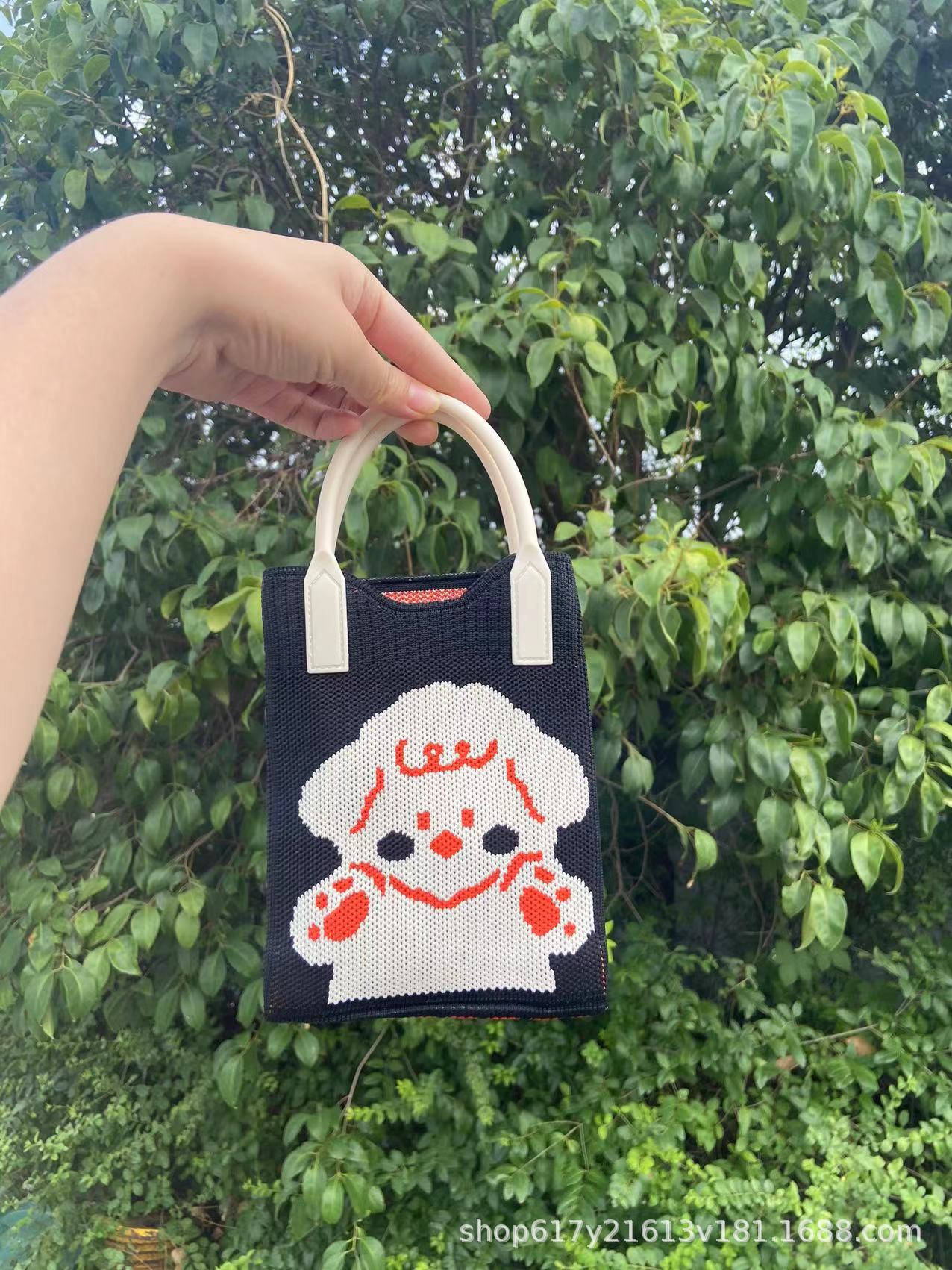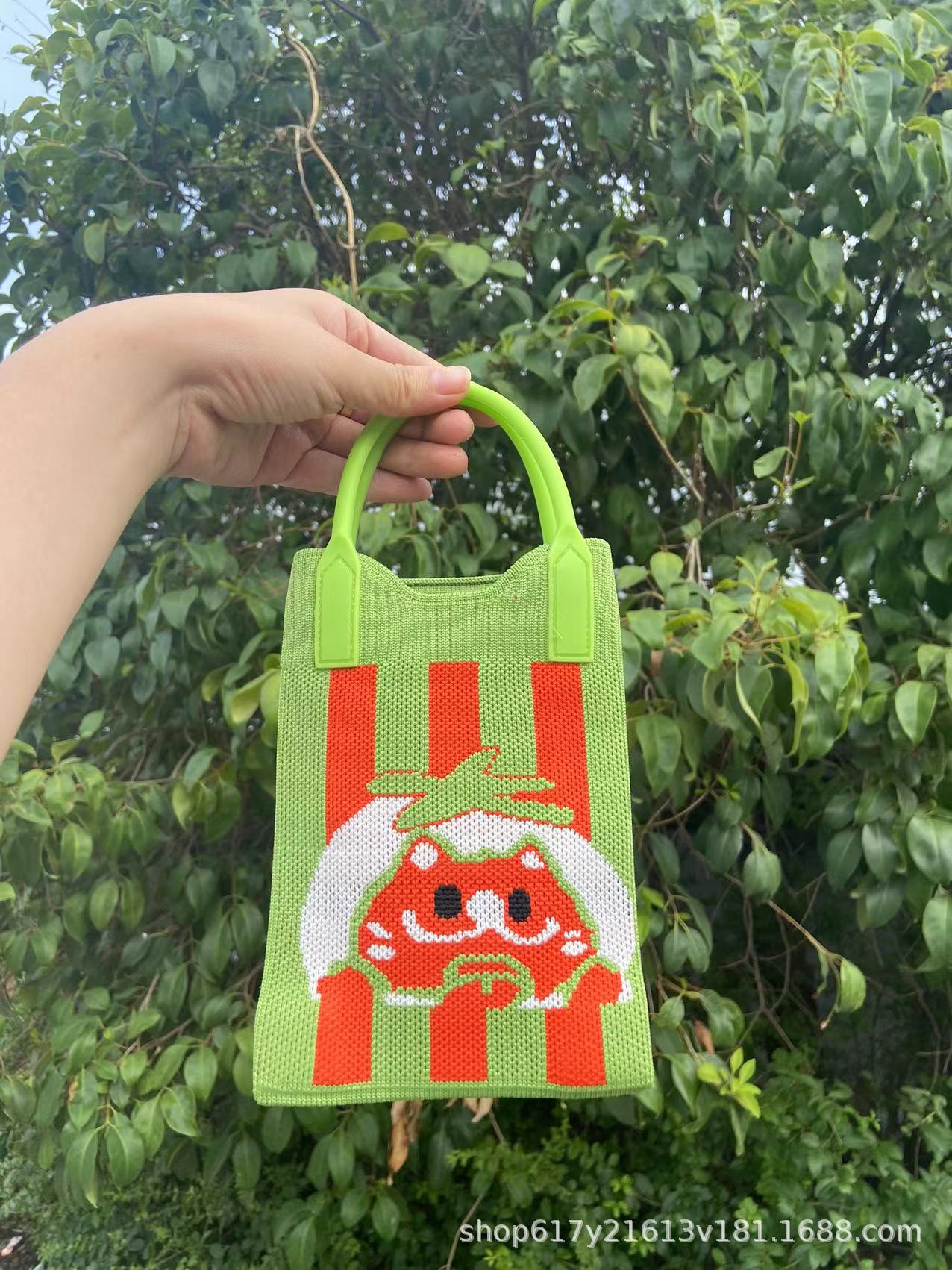 Neues Ins Silicon Tragbares Tilt Strick-Handy-Tasche modische vielseitige Comic Cartoon süße Dame Handträgertasche