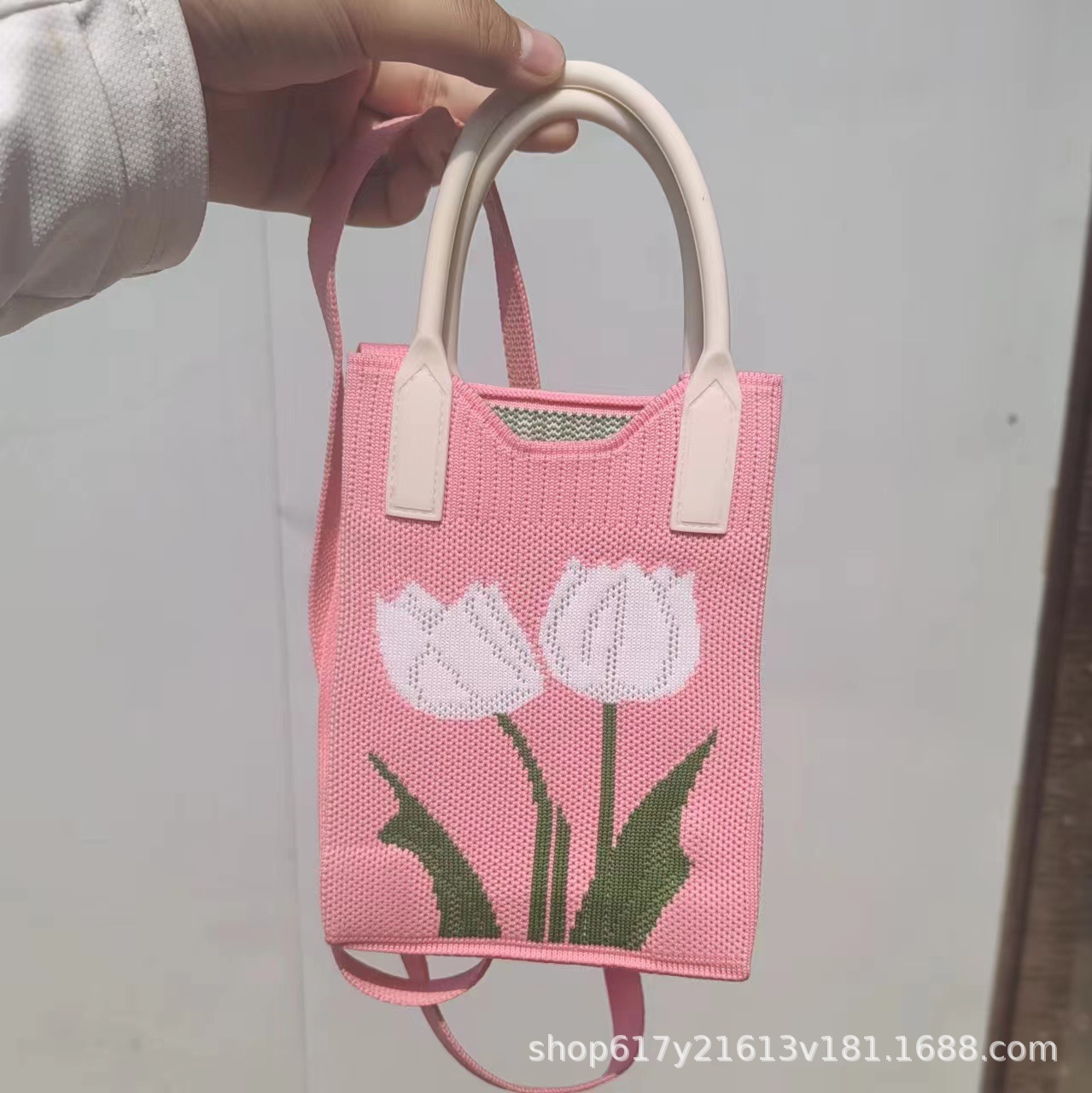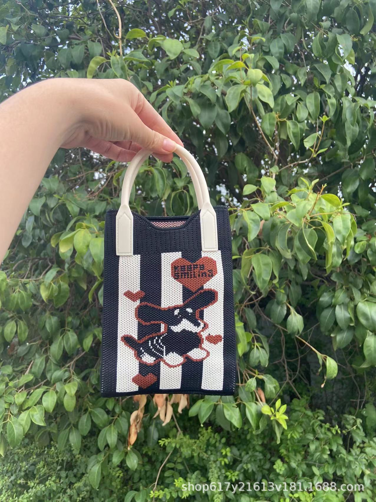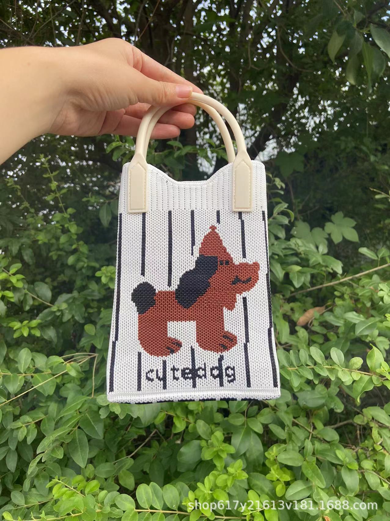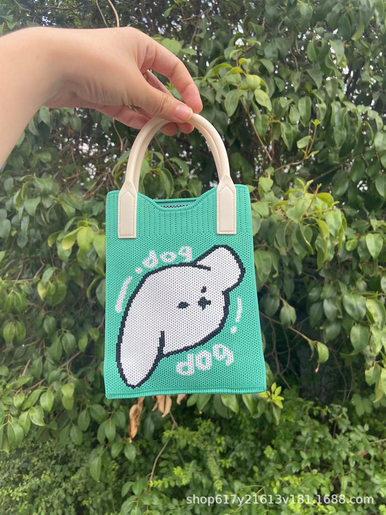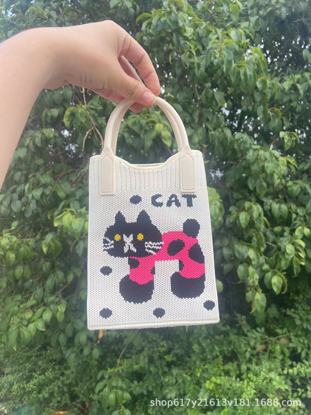 Neues Ins Silicon Tragbares Tilt Strick-Handy-Tasche modische vielseitige Comic Cartoon süße Dame Handträgertasche