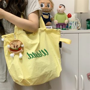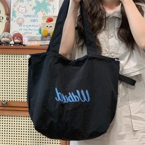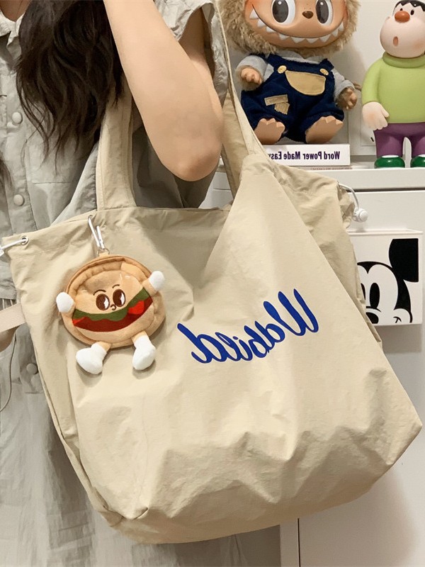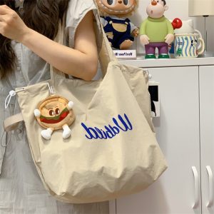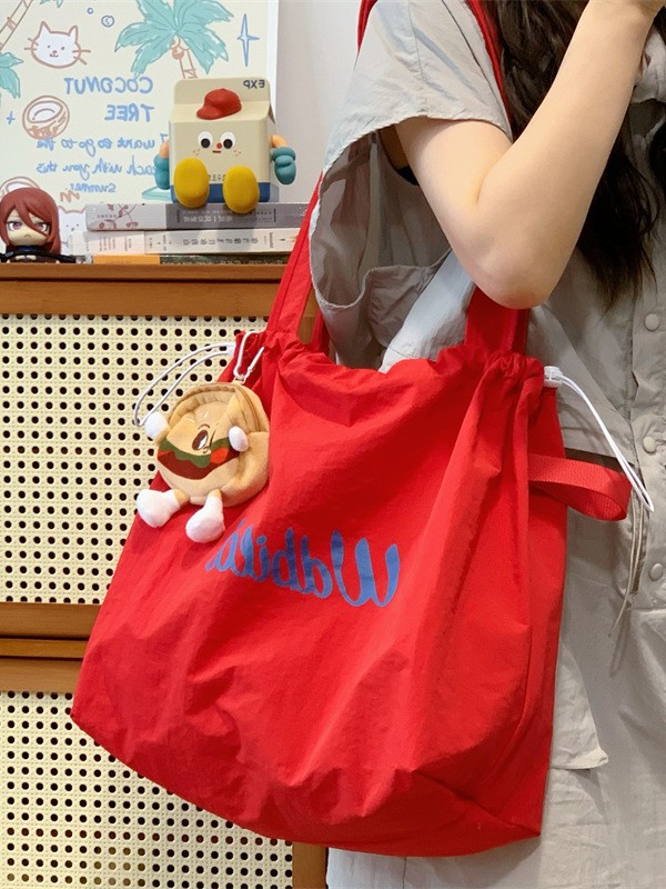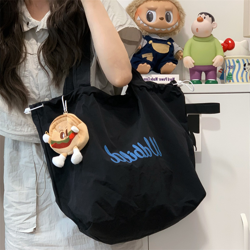 Slack Tote Bag Damen 2024 neuer Kordelstring -Leinwand -Beutel Pendler Leichter Einkaufstasche große Umhängetasche mit großer Kapazität