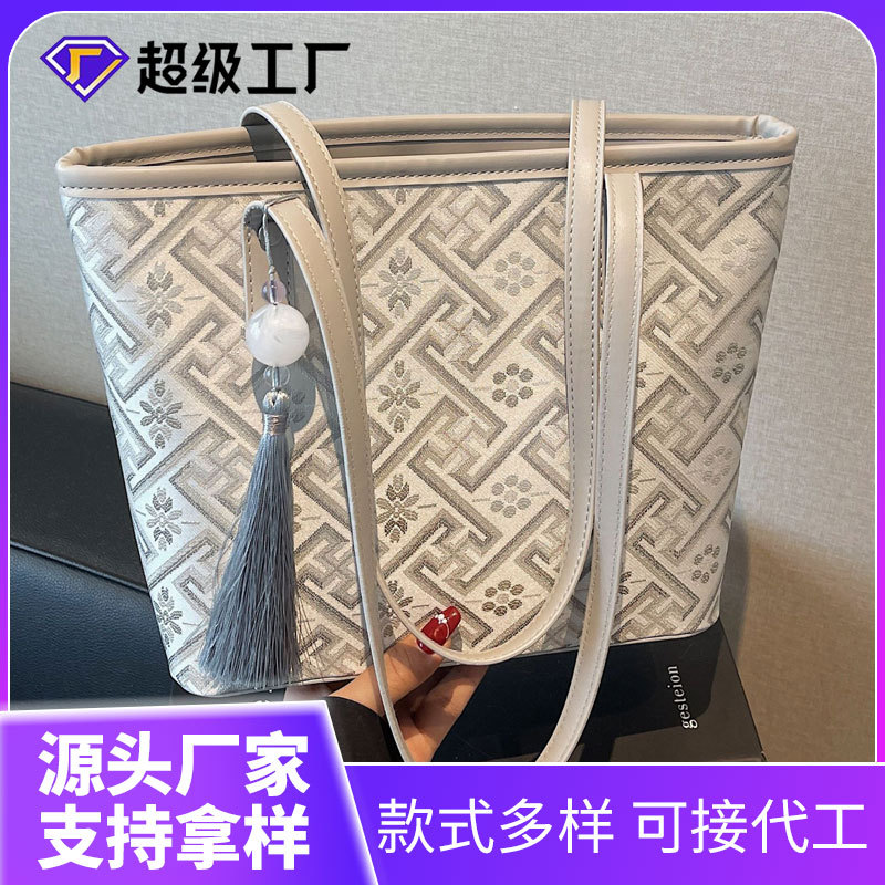 Wanji Muster Hand-to-Tür-Einkaufstasche 2025 Neue ethnische Stil Pendlertasche Licht Luxus Mode große Kapazität Einschuld Frauenbeutel